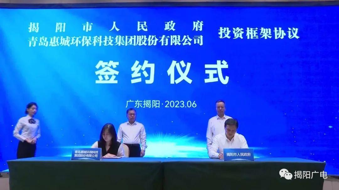 6月18日,揭阳市人民政府与青岛惠城环保科技集团股份有限公司在揭阳市区签署投资框架协议。