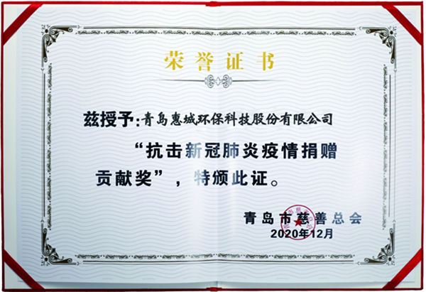 惠城环保荣获 “抗击新冠肺炎疫情捐赠贡献奖”