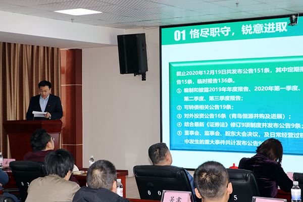为全面、准确、客观地评价公司中高层干部履职尽责情况,进一步加强公司人才梯队建设,2020年12月26日-12月28日,公司中高层干部述职报告会在研发中心418会议室举行。公司董事长张新功、总经理李正及其他中高层管理干部、控股及参股公司委派的负责人参加了会议。