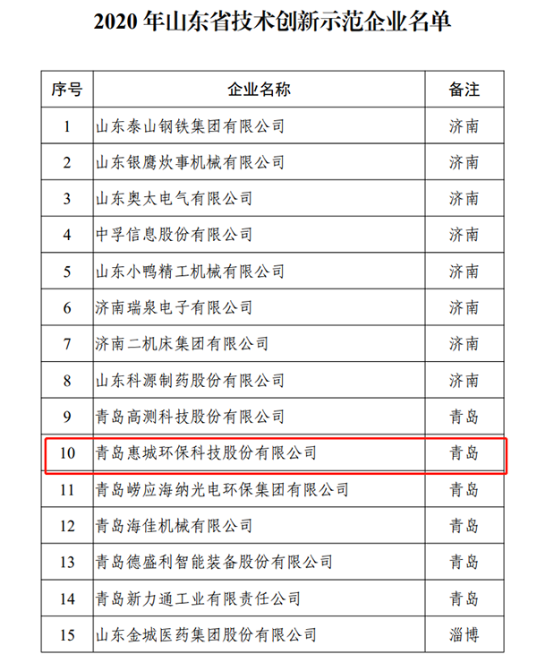 近日,经山东省工信厅认定,我公司成功入选2020年山东省技术创新示范企业。