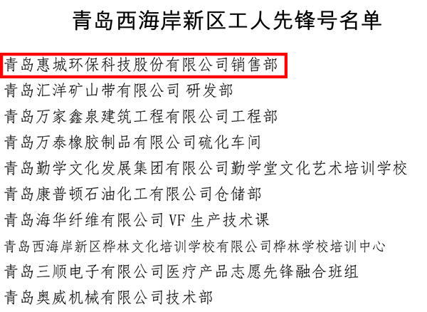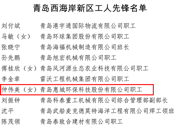 为大力弘扬劳模精神、劳动精神、工匠精神,激励全区广大职工爱岗敬业,争创一流,日前,青岛西海岸新区总工会发起了新区工人先锋(号)的推荐评选工作。经过考察评比,我公司销售团队和仲伟美个人喜获 “工人先锋号”和“工人先锋”荣誉称号。
