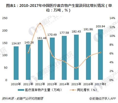 近年来,伴随着医学技术进步及人民生活水平、健康状况的提高,临床上大量使用一次性医疗卫生用品,医疗废弃物的产生量大幅提升。据前瞻产业研究院测算,2016年,我国医疗废弃物产生量已达到191.96万吨,同比增长5.22%。