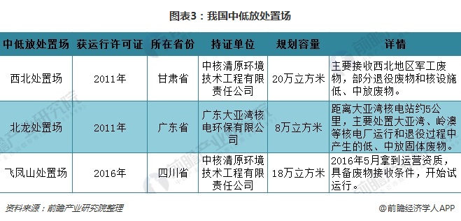 另外,以每年每台核电机组产生60立方米固体废物包计算,预计2020年我国每年将产生多达3480立方米的固体废物。然而,我国目前仅有中低放核废料处置场3座,分别为西北处置场、北龙处置场以及飞凤山处置场,其规划容量分别20万立方米、8万立方米以及18万立方米。因此,我国中低放处理能力十分紧缺,按照国务院印发的“十三五”生态环境保护规划,提出要建设5座中低放射性废物处置场。