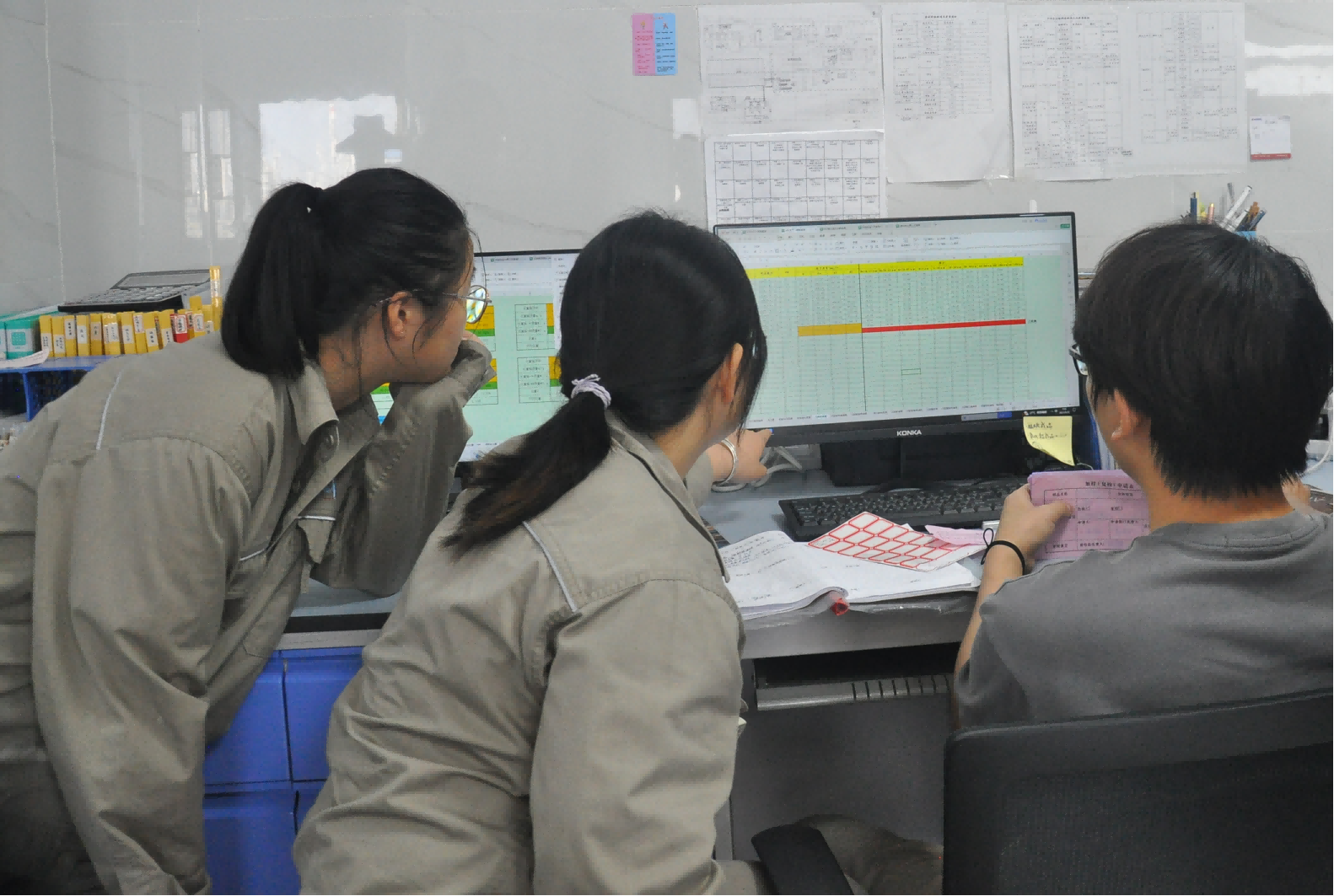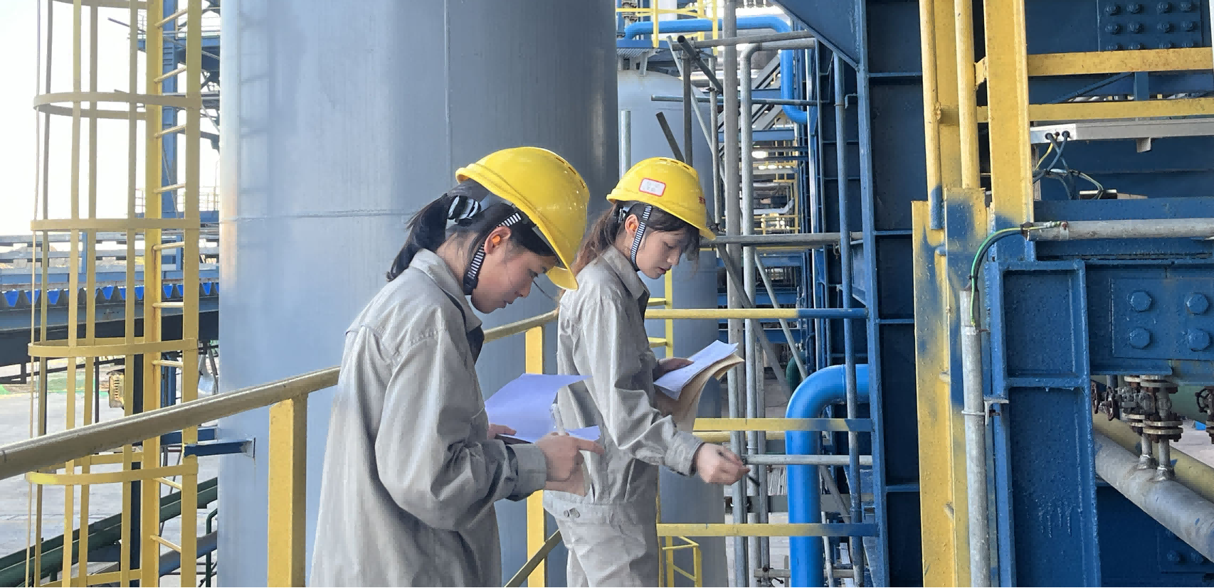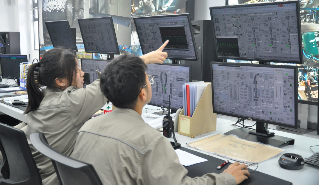 巾帼不让须眉,生产部的女孩子们也积极投入到培训学习当中。除了要到现场学习,她们还需要在中控室及时监控和调整参数,迅速发现和处理特殊情况,及时与现场操作人员联系。