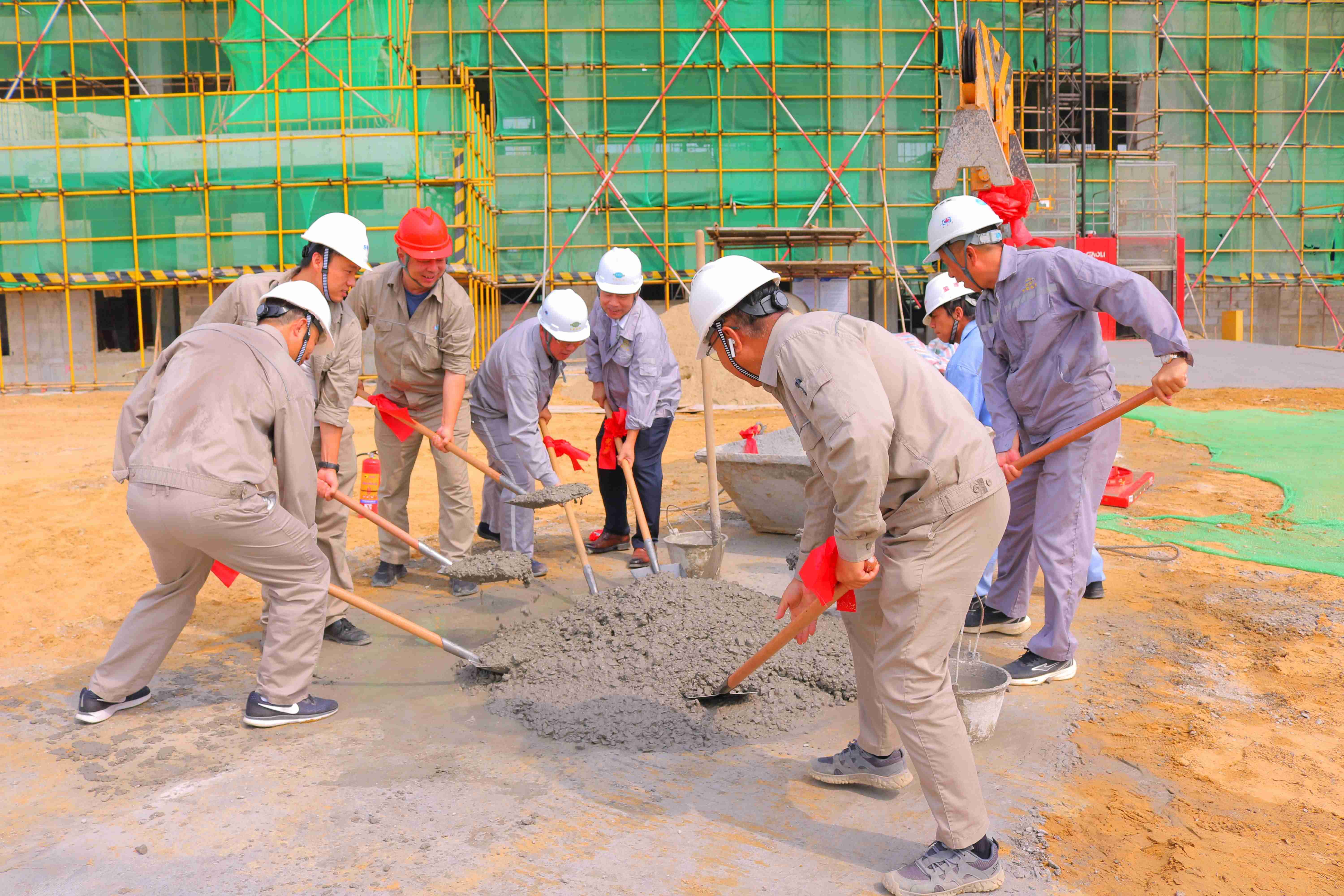 时风澍雨酿花天,吉日良辰喜报连。8月8日,随着最后一段顶板混凝土完成浇筑,20万吨/年混合废塑料资源化综合利用示范性项目办公楼结构喜封金顶,标志着项目阶段性节点顺利完成,为年底建成投产奠定了坚实基础。惠城环保集团子公司广东东粤化学科技有限公司总经理李恩泉、中国化学工程第四建设有限公司华南分公司党委书记寻飞跃、广州石化建设监理有限公司总监理工程师盛筠等领导出席封顶仪式。