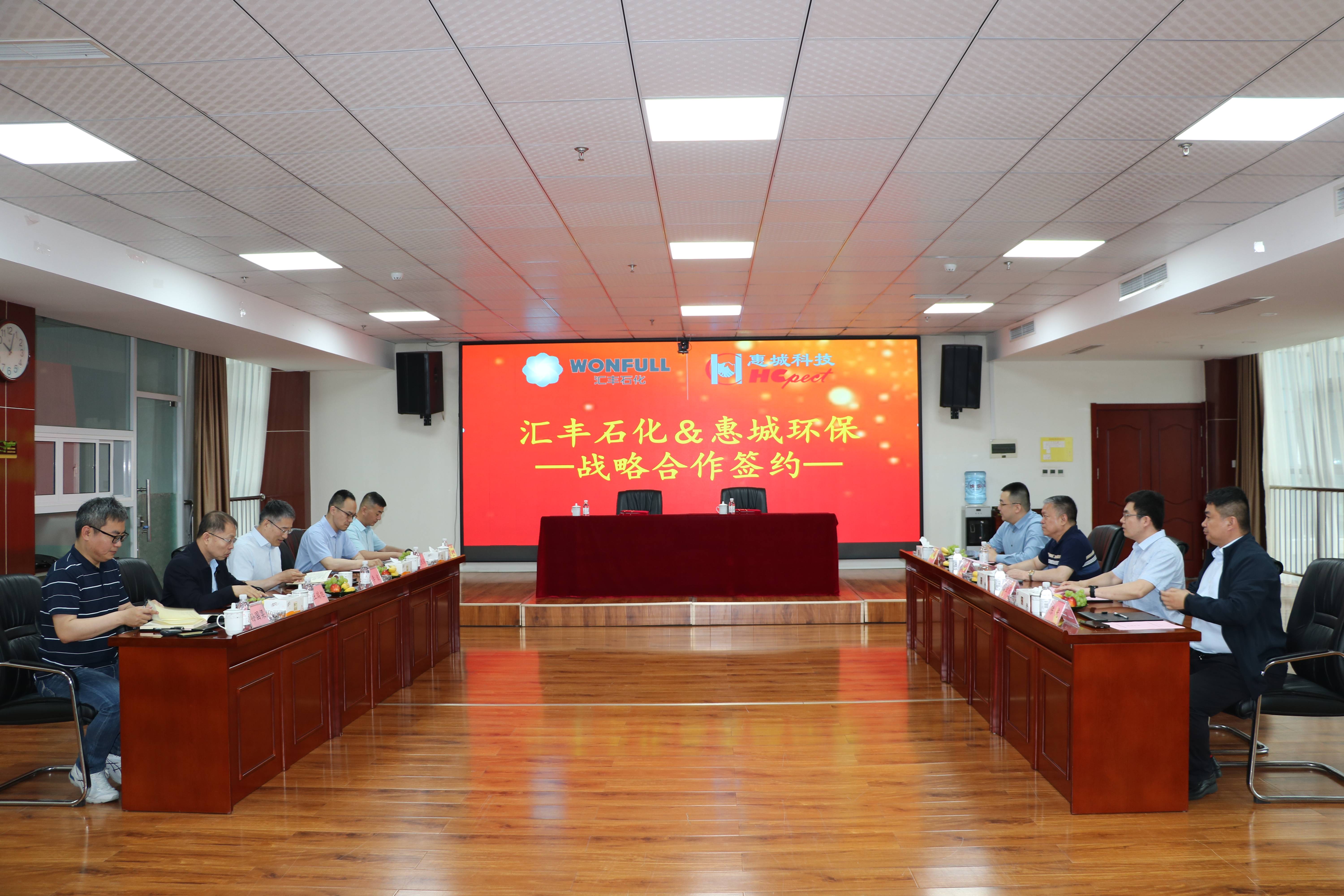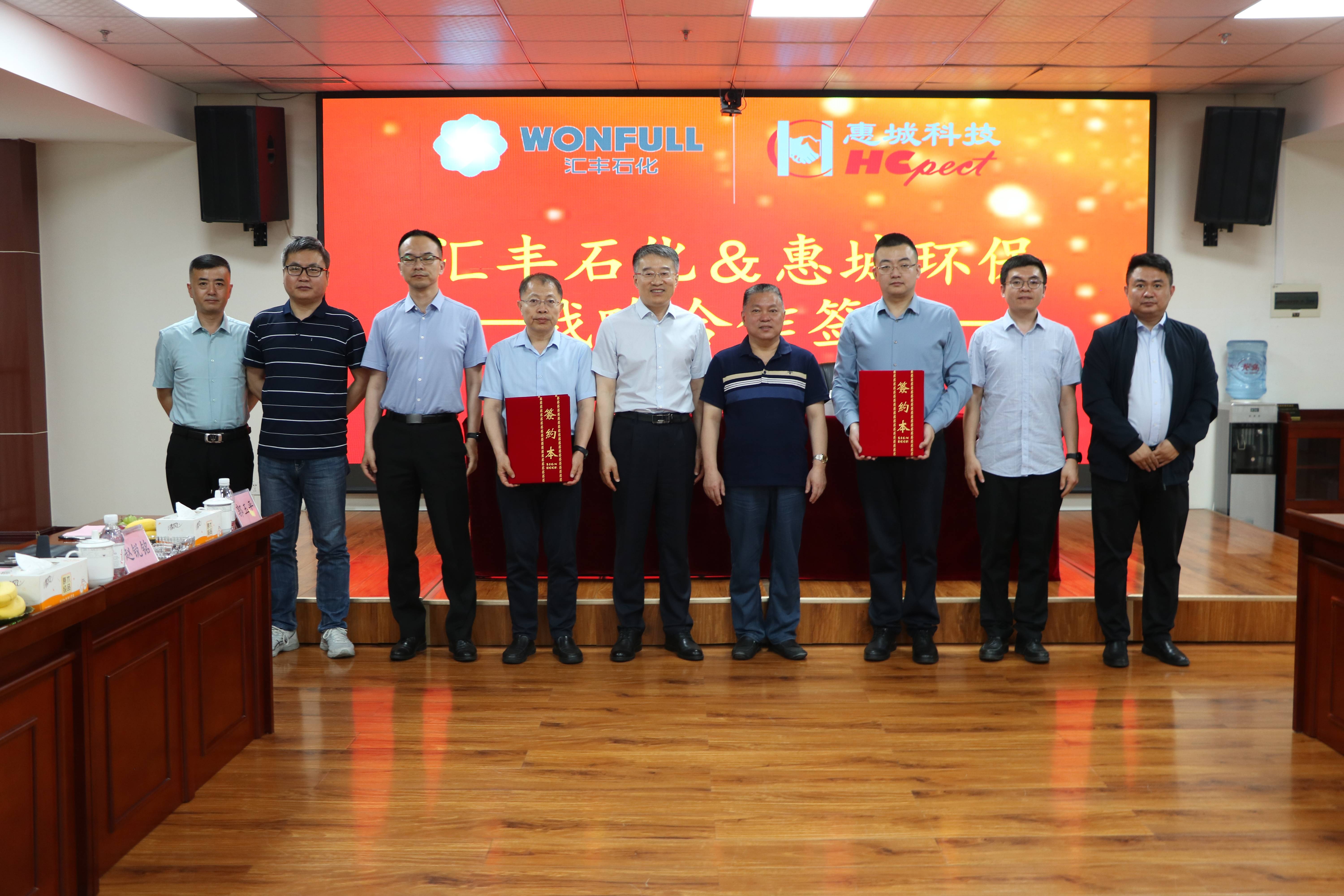 为进一步推动绿色循环经济高质量可持续发展,加快先进环保技术成果转化落地,5月18日,青岛惠城环保科技集团股份有限公司(以下简称“惠城环保”)与山东汇丰石化集团有限公司(以下简称“汇丰石化”)战略合作签约仪式在惠城环保研发大楼418会议室隆重举行。汇丰石化总裁李波、总工程师王瑞旭,惠城环保创始人张新功、总经理林瀚等出席签约仪式。