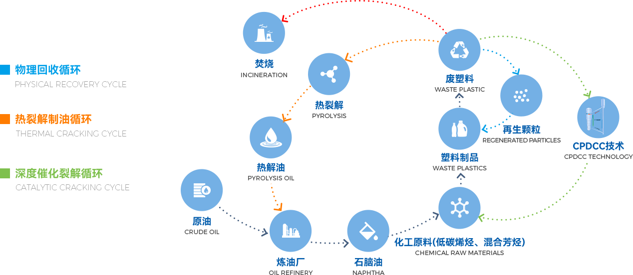 公司自主研发的混合废塑料深度催化裂解技术(CPDCC),将各类低值废塑料“一步法”直接制取液化塑料裂解气(LPCG)、塑料裂解气(PCG)和塑料裂解轻油(PCLO)等产品,收率超过92%,攻克了废塑料分选难、目标产物收率低、产品品质差、氯化氢易腐蚀等行业瓶颈,整体工艺技术全球首创。